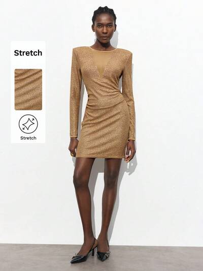 SHEIN Maija 女性用エレガントなシークインのメッシュ切替ミニドレス、セクシーなボディコンスタイル、クリスマスと秋に最適