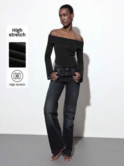 SHEIN Maija 女性用オフショルダー ボタン付きフィットフレアスリーブブラウス-64%