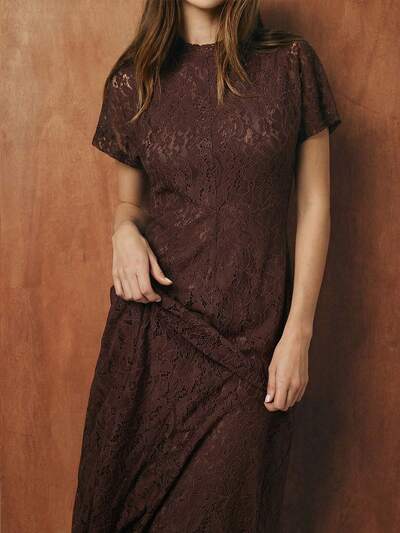 SHEIN Maija 女性用ウエストリボン付きブラウンノースリーブドレス-32%