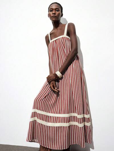 SHEIN Maija 여성 스트라이프 캐주얼 루즈 스파게티 스트랩 드레스