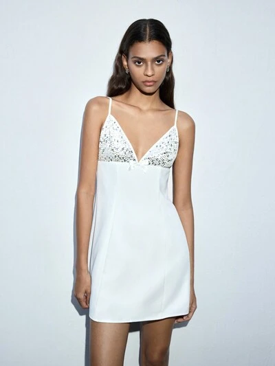 SHEIN Maija 라인스톤으로 장식된 캐미 디자인 화이트 섬머 미디 드레스, 발렌타인데이, 파티 및 소셜 행사에 적합-23%