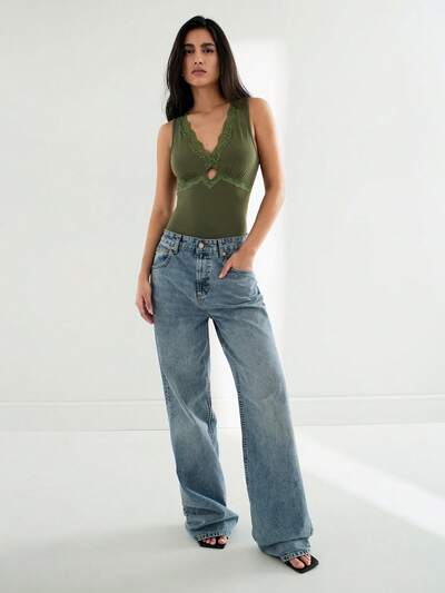 SHEIN Maija 2025년 여성 새로운 여름 캐주얼 시크 레이스 스플라이스 브이넥 바디수트, 일상 착용, 비치, 음악 축제, 휴가, 낭만적인 도시 외출, 웨딩 게스트, 졸업 시즌에 다용도로 활용 가능-23%