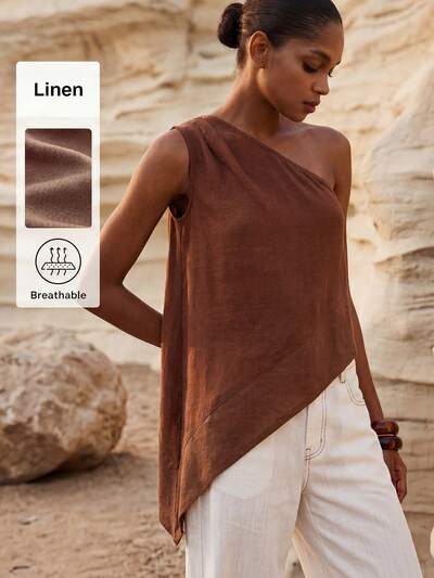 SHEIN Maija 여성용 솔리드 컬러 비대칭 밑단 드레이프 넥 상의 및 와이드 레그 팬츠 2피스 세트-23%