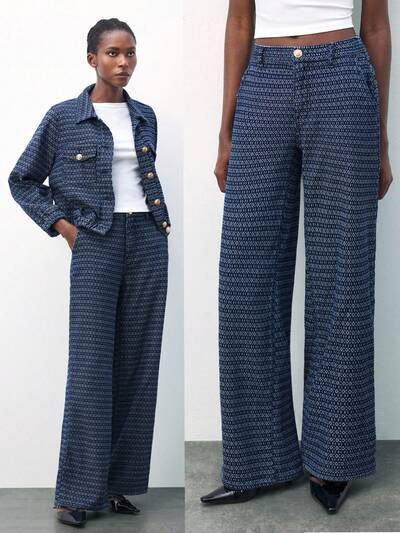 SHEIN Maija 여성 패셔너블 캐주얼 워싱 폴카 도트 프린트 플레어 진, 가을-25%