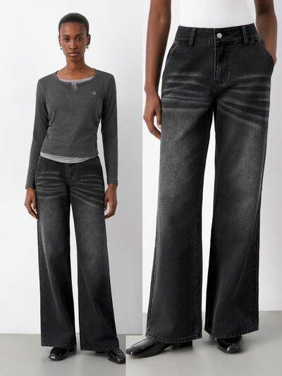 SHEIN Maija 여성 캐주얼 워싱 와이드 레그 청바지-25%