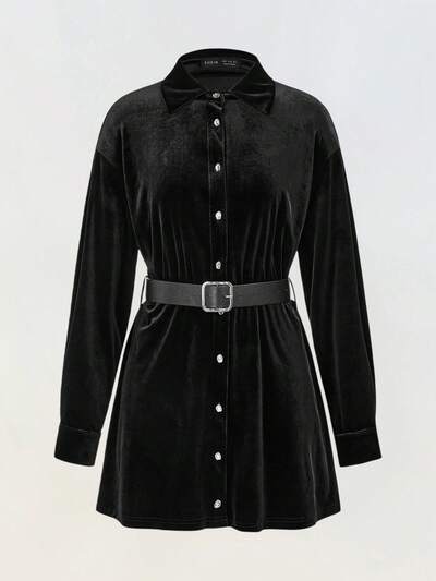 SHEIN Maija 여성 캐주얼 솔리드 컬러 앞 버튼 미니 드레스-23%