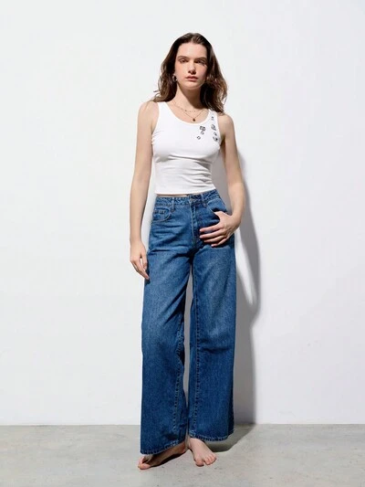SHEIN Maija 여성용 봄과 여름 새로운 스타일 화이트 메탈 입체 꽃 탱크탑, 도시적, 모던, 우아한, 민소매, 일상복 출퇴근, 외출, 휴가, 페스티벌 파티, 결혼식 데이트 착용에 적합-32%