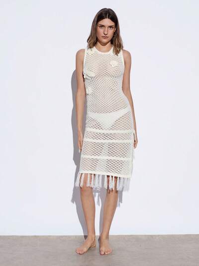 SHEIN Maija 2025년 여름 새로운 화이트 크로쉐 레이스업 태슬 헴 보헤미안 드레스, 음악 축제, 해변 여행, 파티, 결혼식, 졸업, 일상 캐주얼에 적합한 로맨틱한 도시 리조트 웨어-60%