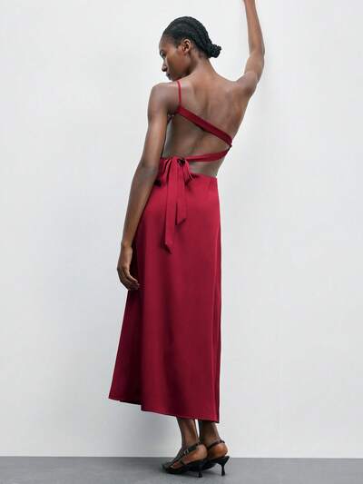 SHEIN Maija 여성 섹시 미니멀리스트 솔리드 컬러 백리스 트위스트 숄더 피티드 롱 드레스, 여름