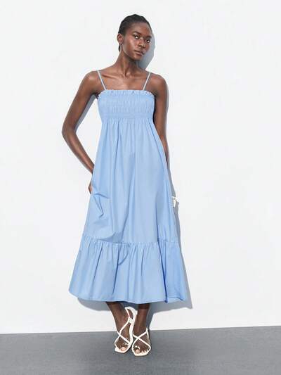 SHEIN Maija 2025 봄 & 여름 새로운 패션 캐주얼 편안한 여성 블루 맥시 드레스, 음악 축제 해변 휴가 일상 낭만적인 도시 웨어, 외출, 파티, 웨딩 게스트, 빈티지 스타일, 졸업 시즌에 적합-32%