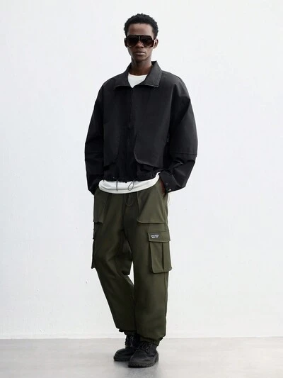 SHEIN Maija Men's 2025 New Military Green Loose Cargo Pants With Multiple Pockets, Casual Versatile Ankle Banded Fit For Daily, Commute, Holidays, New Year Party, Valentine's Day Date