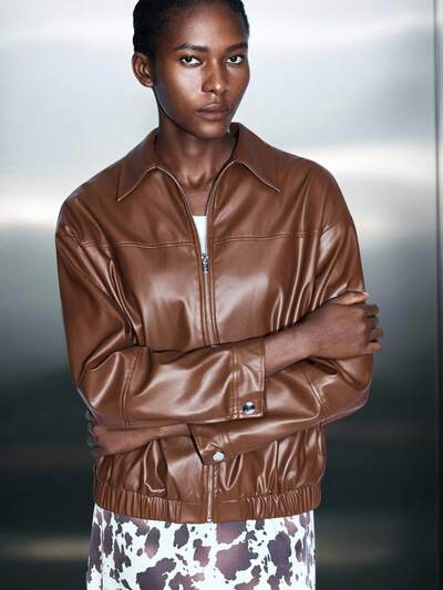 SHEIN Maija Plus Size Women Solid Color PU Leather Zip-Up Casual Loose Jacket Brown Leather Jacket In Fall/Winter