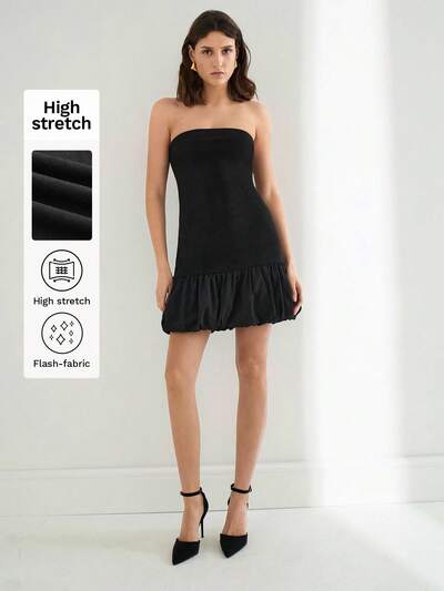 SHEIN Maija Women Solid Color Ruffle Hem Tube Dress