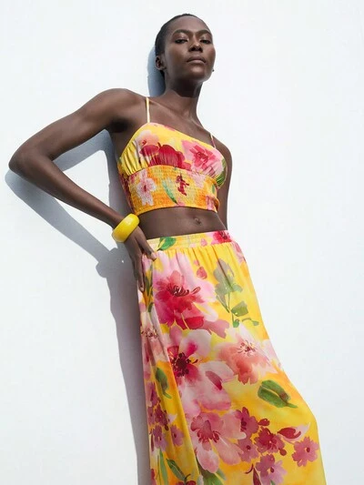 SHEIN Maija Women's Leopard Print Wide Leg Pants, Suitable For Spring/Summer, Holiday, Beach Romantic, Fashion, Versatile; Suitable For Summer Vacation, Comfortable, Bohemian Style, Beach Wear