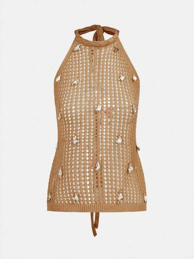 SHEIN Maija Women's Hollow Out Shell Decor Knitted Halter Neck Cover Up