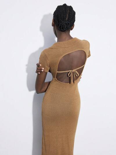 SHEIN Maija Women's Sweater Dress Solid Color Short Sleeve, Casual & Fashionable For Daily Wear Old Money Hippie-60%