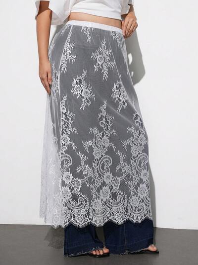 SHEIN Maija Plus SizeWomen's Four Seasons Lace All-Match Skirt, Fashionable And Sexy See-Through Lace Lace Super Long All-Match Skirt, Women's Autumn Clothing