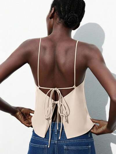 SHEIN Maija 2026 Summer & Winter New Adjustable Tie Bow Knot Vest Top, Elegant For Party, Urban Commute, Workplace, Business Office, Outgoing Daily, Romantic Casual 90s Retro Style, Suitable For Wedding Guest, Host, Date, Party, Concert, Stage Performance, Summer Holiday Tie Backless Top Open Back Top St Patrick's Day Women Summer Easter Women Party Top Beach Summer Holiday Each Vacation For Women Summer For Women Going Out Graduation Casual Cami Top For Women