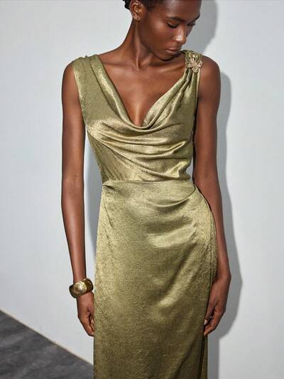 SHEIN Maija Women's Fashionable Solid Color Sleeveless Cropped Midi Dress For Summer St Patrick's Day Women Easter Summer Outfits Easter Dress Women Party Dress Beach Dress Summer Holiday Outfits Each Vacation Outfits For Women Summer Outfit For Women Going Out Outfits Graduation Graduation Outfit Casual Dresses Casual Blouses For Women, Metallic Design, Geometric Patterns, 2 In 1 Design