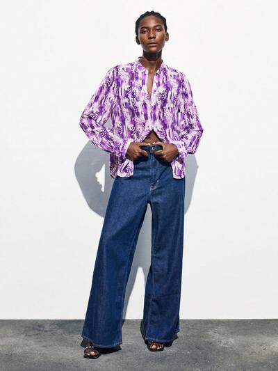 SHEIN Maija Women's Casual Tie-Dye Printed Shirt For Vacation Women Blouses And Shirts Women Blouses For Summer Western Blouse Western Button Up Women Purple Blouse, Vacation