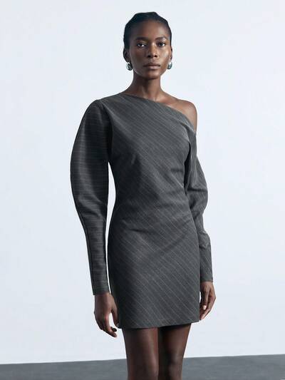 SHEIN Maija Women Striped Print Asymmetrical Neck Long Sleeve Mini Dress For Women Elegant
