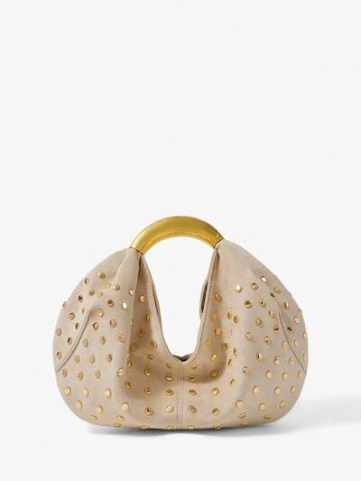 SHEIN Maija Ladies, Women Top Handle Bags, Suede, Suede Bag, Retro, Rivets, Vintage, Gold Metal Handle, Fashionable, Elegant , Simple, Personalized, Versatile, Classic, For Commute, Office, Date, Daily, Shopping, Afternoon Tea