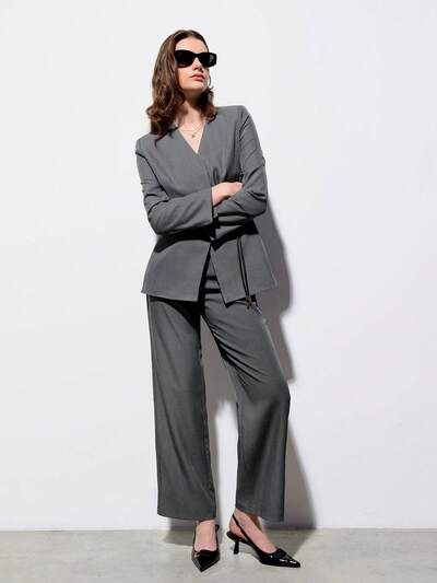 SHEIN Maija Spring And Summer New Style Gray Belted Woven Women's Suit Blazer Jacket, Urban, Modern, Elegant, Daily Casual Commuting, Suitable For Going Out, Holiday, Holiday Party, Wedding Date In Fall/Winter