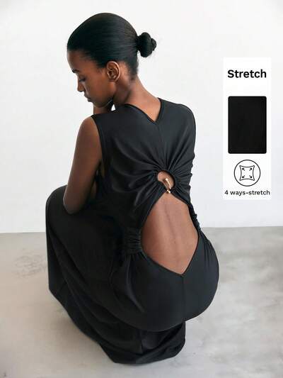 SHEIN Maija Women's Solid Color Backless Sleeveless Long Dress, Fashion ,Vacation Outfits,Autumn Outfits For Women, Christmas Women's Clothing