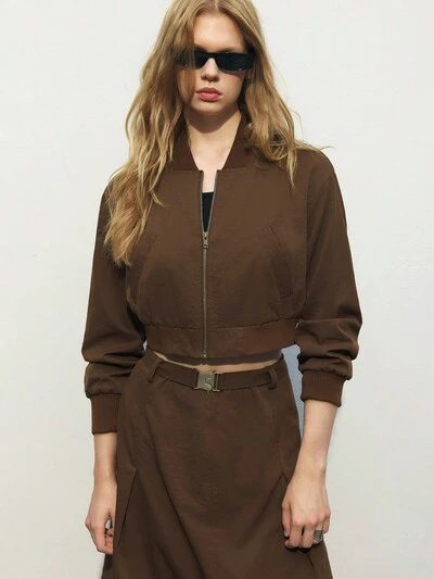 SHEIN Maija Women's Solid Color Long Sleeve Short Casual Bomber Jacket, Spring & Autumn