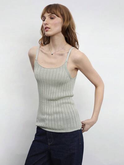 SHEIN Maija Women's Green Casual Commuter Chic Simple Solid Ribbed Knit Cami Tank Top, Sleeveless Pullover Sweater Vest For Summer Outdoor Music Festival-32%