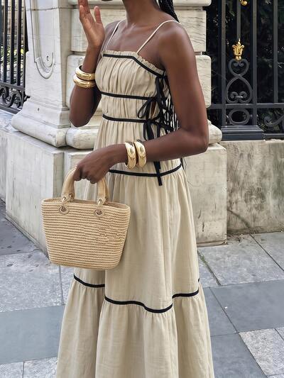 SHEIN Maija Damska sukienka na wakacje, plisowana, w kontrastowym kolorze, z wiązaniem w talii, idealna na plażę