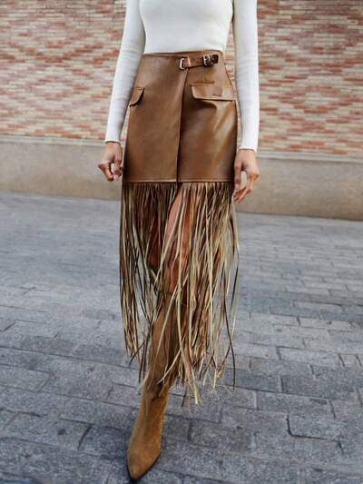 SHEIN Maija Spódnica kopertowa z frędzlami ze skóry PU z kolekcji Commuter z 2025 roku