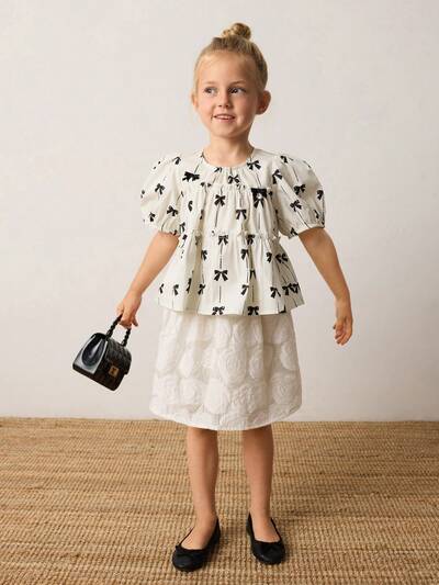 Luźna, swobodna bluzka z kwiatowym wzorem i kokardą dla młodych dziewcząt