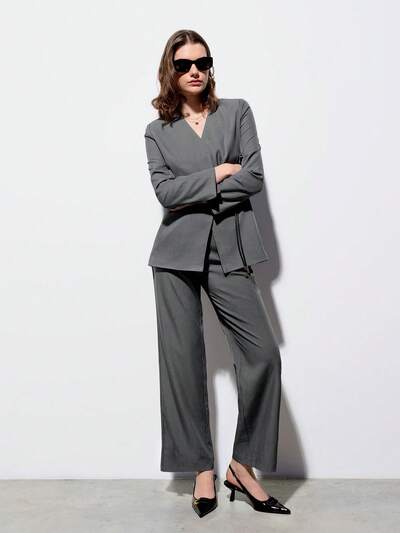 SHEIN Maija Spodnie damskie z tkaniny w kolorze szarym, letnie, w nowym stylu, 2025, do garnituru, miejskie, nowoczesne i eleganckie, do codziennego użytku, odpowiednie na wakacje, imprezy, wesela i randki jesienią/zimą