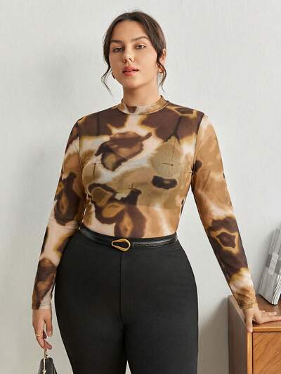 SHEIN Maija Bluzka damska z długim rękawem i wzorem w dużych rozmiarach, dopasowana, z długim rękawem, damska bluzka z długim rękawem, strój kamuflażowy dla kobiet, strój dwuczęściowy, damski, luźny, prześwitujący top z siateczki, bluzki w dużych rozmiarach, damskie bluzki w kamuflażu, damskie bluzki z długim rękawem, damskie bluzki z długim rękawem-48%