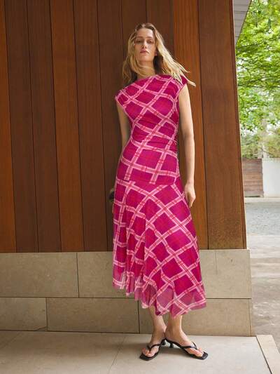 SHEIN Maija Sukienka damska w kratę z okrągłym dekoltem i rękawami typu raglan, dopasowana, asymetryczna, swobodna, uniwersalna, miejska i szykowna-23%
