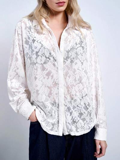 SHEIN Maija Elegancka damska koszula z kwiatowym wzorem 3D w nowoczesnym miejskim stylu casual, odpowiednia na wyjścia, święta, imprezy, randki, spotkania, wesela, festiwale muzyczne, wakacje, wiosna/lato-60%