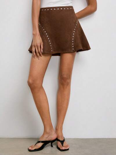 SHEIN Maija Saia Mini Casual Versátil para Encontros e Passeios com Decoração de Rebites para Mulheres