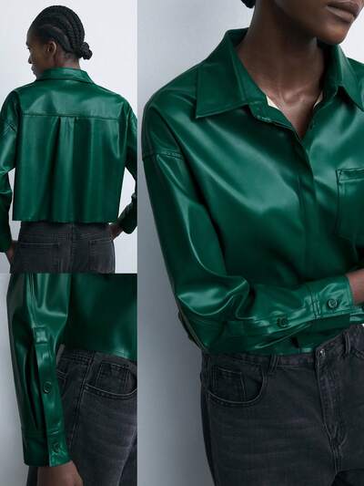 SHEIN Maija New Autumn Winter Urban Chic Elegant Retro Business Casual Outdoor Mocha Green PU Leather Shirt For Ladies