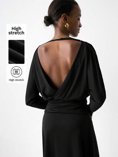 SHEIN Maija Vestido Elegante Feminino de Cor Sólida com Decote Nas Costas e Fenda Alta, Projetado com Elegância. Adequado para Transporte Urbano, Ocasiões de Negócios, Casual, Férias na Praia. Versátil para Festivais de Música, Dia dos Namorados, Encontros de Verão, Exibindo Elegância e Confiança Feminina.