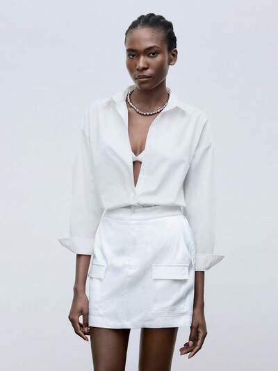 SHEIN Maija Saia A-linha Feminina Com Bolsos De Aba Em Cor Sólida