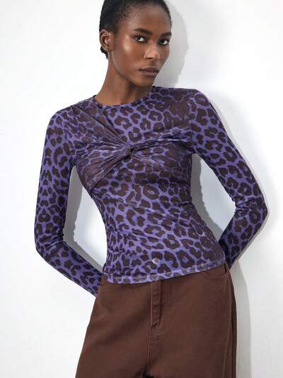 SHEIN Maija Blusa Ajustada com Estampa de Onça e Nó Frontal Fashionable para Mulheres
