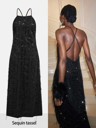 SHEIN Maija Vestido Feminino com Halter, Franjas e Lantejoulas para Festa de Natal