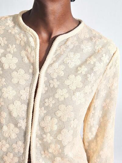 SHEIN Maija Cardigan de Manga Longa com Decote Redondo, Ombros Caídos, Aberto na Frente, Bordado com Lantejoulas Cor de Damasco para Mulheres, Essencial de Moda Versátil para Todas as Estações, Elegante Casual Business para Escritório, Vibes Vintage Discretas, Estilo Urbano Sofisticado, Adequado para Ocasiões Sociais, Férias e Festas-60%
