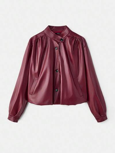 SHEIN Maija Jaqueta de Couro Feminina Moderna Urbana Casual de Outono Vermelha, Versátil e Folgada, Confortável, Casual Business, Gótica de Natal e Halloween, Outono para Mulheres, Festa do Ano Novo e Dia Nacional da Arábia Saudita-25%